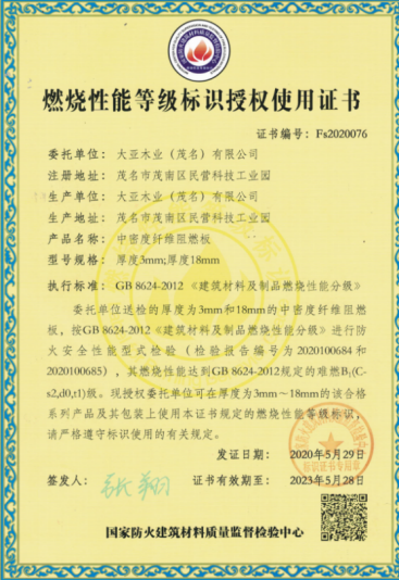 大亞人造板的阻燃刨花板和阻燃纖維板阻燃性能優(yōu)異,能有效抑制火焰燃燒,減緩火勢(shì)蔓延,為逃生提供時(shí)間。而且大亞阻燃板的環(huán)保等級(jí)能達(dá)到E0級(jí),安全又健康,全方位地守護(hù)家人。