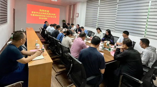 座談會(huì)上,吳健忠副總裁首先對(duì)調(diào)研組的到來(lái)表示熱烈歡迎,并向調(diào)研組作了茂名工廠近年來(lái)的生產(chǎn)經(jīng)營(yíng)運(yùn)行情況匯報(bào)。楊海軍主任詳細(xì)詢問(wèn)了茂名工廠目前林業(yè)資源生產(chǎn)利用情況,針對(duì)人造板行業(yè)林業(yè)資源利用的固碳作用和計(jì)算方式等進(jìn)行了深入探討。與會(huì)人員就如何著力提升林業(yè)生物質(zhì)能源在實(shí)現(xiàn)“雙碳”目標(biāo)和高質(zhì)量發(fā)展的重要作用,落實(shí)《“十四五”可再生能源發(fā)展規(guī)劃》有關(guān)工作,加快推動(dòng)林業(yè)生物質(zhì)資源化利用高質(zhì)量發(fā)展路徑等方面進(jìn)行了充分交流。