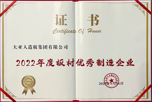會議同期,中國木材與木制品流通協會對2022年木業優秀企業進行了表彰,大亞人造板榮獲中國板材國家品牌、中國板材民族品牌、2022年度十大刨花板品牌、2022年度十大纖維板品牌、2022年度板材優秀制造企業等五項殊榮!