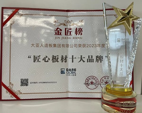 中國板材“金匠榜”頒獎典禮上,大亞人造板連續第三年蟬聯“匠心板材十大品牌”!